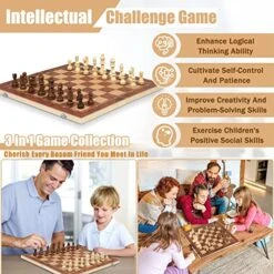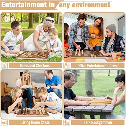 - 【SUITABLE FOR ADULTS AND KIDS】The adult chess set board game with storage is suitable for all ages, novices to experienced chess players can learn chess, checkers and backgammon with joy. This exquisite and durable wooden chess board game set is sure to win everyone’s favor! It is an effective alternative for those addicted to electronics.