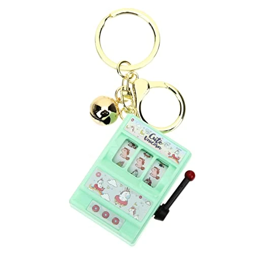 - Casino theme party decorations– slot machine keychain – turn the handle, when the three groups of pictures is consistent, the game victory.