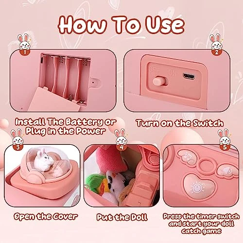 - 【Battery Operated Or Usb Charging】Our Kids Claw Machine Have Two Power Supply Modes, Battery Power(Batteries Not Included), You Can Also Operate This Mini Arcade Toy Via Usb Cable(Included). Made Of High-Quality Abs Plastic Material, Safe And Non-Toxic. These Mini Arcade Claw Machine Not Easy To Break, Durable, And Have Smooth Edges To Ensure A Safe Grip For Kids.