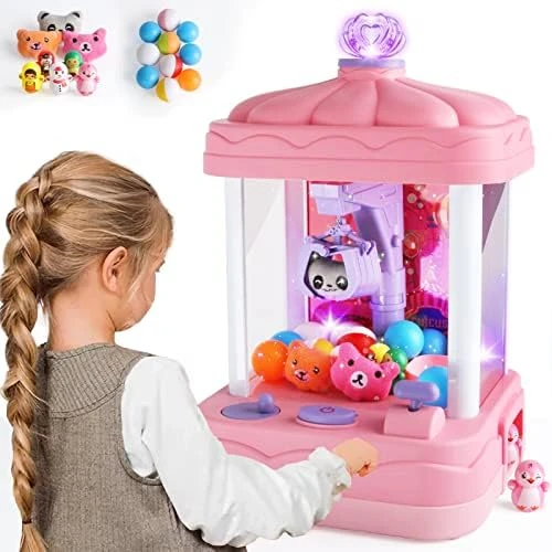 - Our Mini Claw Machine comes with 18 mini plush toys and features lights, sounds, and music for a true arcade game atmosphere. This versatile claw machine can be used to fill with candy, gum, gumballs, snacks, mini Easter eggs and more, making it a great reward training tool for kids.