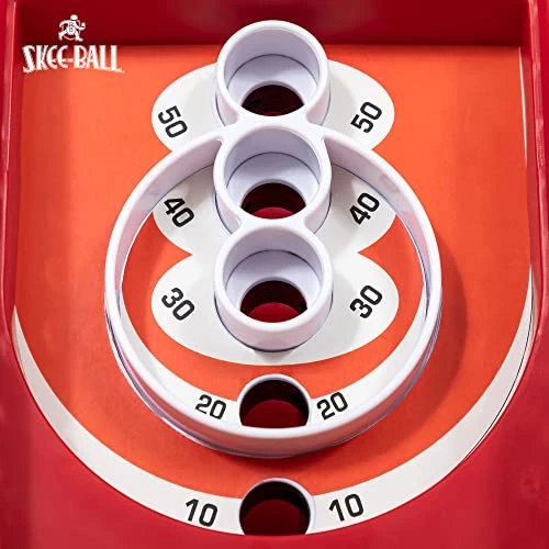 - AUTHENTIC SKEE BALL GAME PLAY – Combine the excitement of bowling games and basketball arcade games with Skee-Ball. To play, bounce the mini Skee-Balls off the trampoline and into the slots to rack up points—just like the real thing.