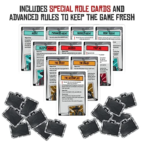 - Includes several roles like the Bugged Agent and Mastermind that can be added to the game to raise the difficulty level!