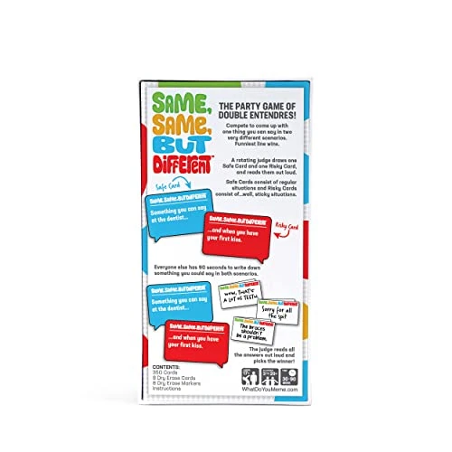 - How To Play: The judge draws a Safe Card and a Risky Card. Then, players write down a response that could reasonably be said in both situations. Funniest answer wins! Just bring your A-game, because it’s harder than you think (get it?)